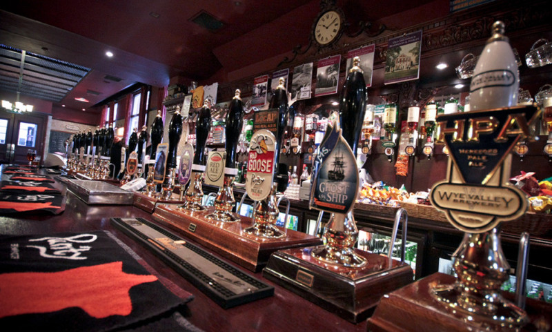 The pub is centrally located and offers a calm and pleasant environment for its visitors. A fantastic array of different British beers on tap and in bottles. Here it is fine to bring in your own food, but the drink consumed must be purchased. It is worth to mention that they offer 16 traditional ale. You can also play darts. The staff are very professional and respectful. You can also taste the beer before ordering.