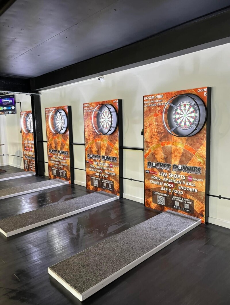 Rocket Ronnie's was established in 2011 on the Isle of Wight, we then expanded to Southampton in May 2018 to the High Street just below the Bargate. Here we boast of 22 English Supreme Winner pool tables 8 stylish grey and silver Blackball tables, the only Chinese pool table on the south coast, a lovey American pool table covered in a powder blue match play cloth and 2 full size snooker tables, a new addition to our venue are 12 dart boards set in their very own room with its own bar and its all set out over 2 floors.