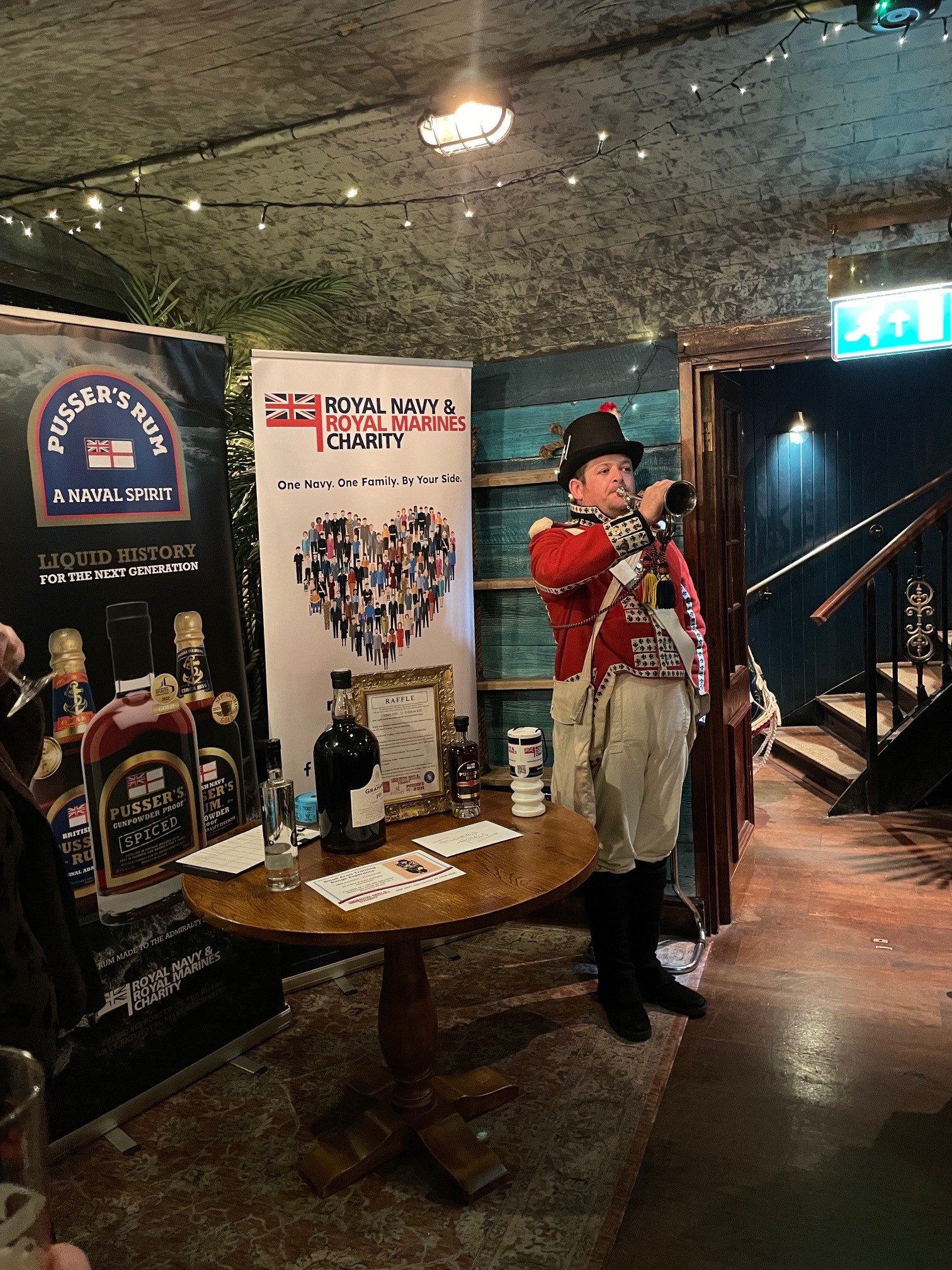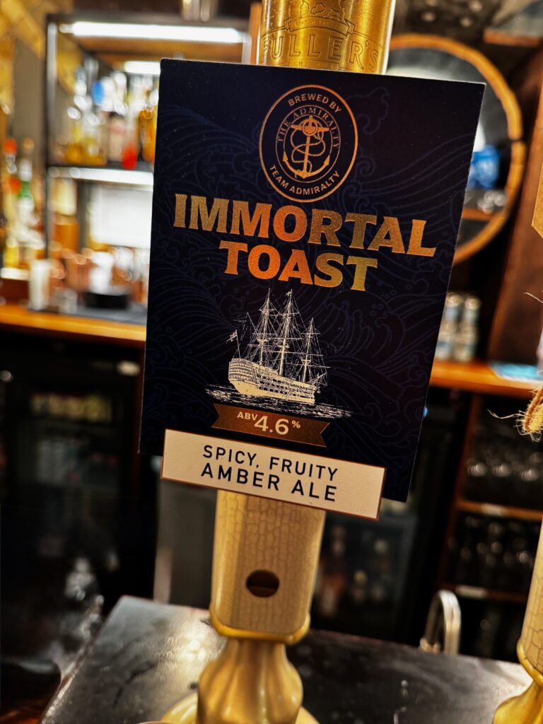 The event was sponsored by Pusser’s Rum – who also provided the rum for the toast and a bottle of its 15-year rum for the raffle. Graham’s Port also played a role in the evening’s celebrations – providing the port for the loyal toast and a gallon of port for the raffle. Adding to the drinks partnerships for the night, Sambrook’s Brewery and the pub team brewed an exclusive beer, Immortal Toast, which will be available on the bar at The Admiralty for the next few weeks.